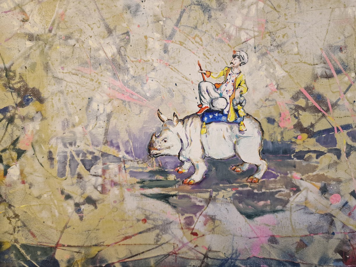 Die Bilder von Andrea Damp erklären sich erst, wenn man den miniaturisierten Details nachgeht. Die erkennt man nur wenn man nah an die Leinwand tritt.
